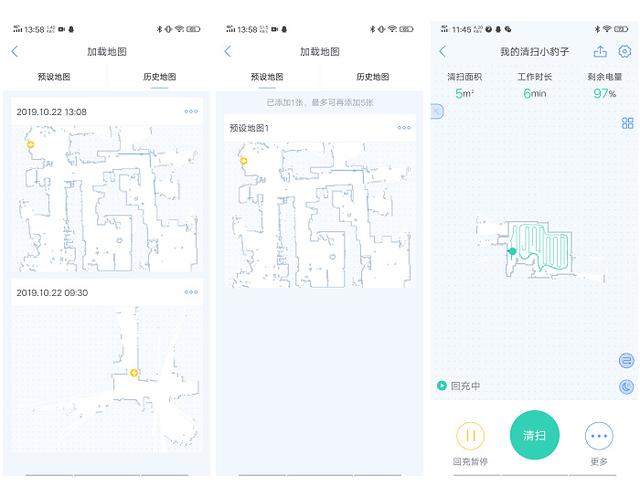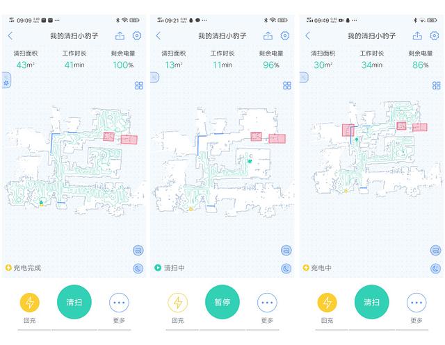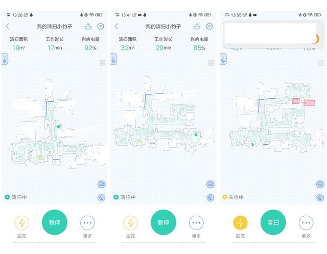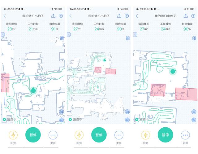 第一次清扫建立了完整地图后,第二次的清扫就会更加准确,快捷,因为无需过多的探索了,这同地图上显示的清扫路径也可以看出来。