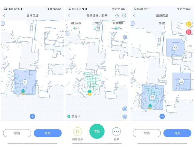 指定区域清扫,可以设置多个区域,而且可单独设置每个区域清扫的次数是一次还是两次。极大的方便了使用,这个功能不错。