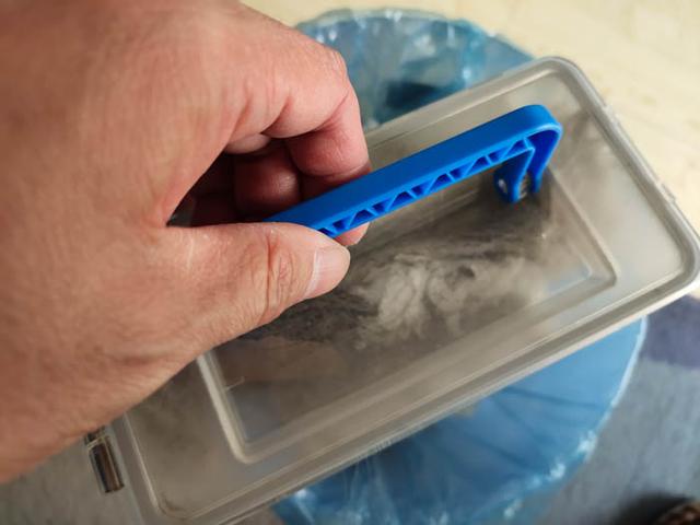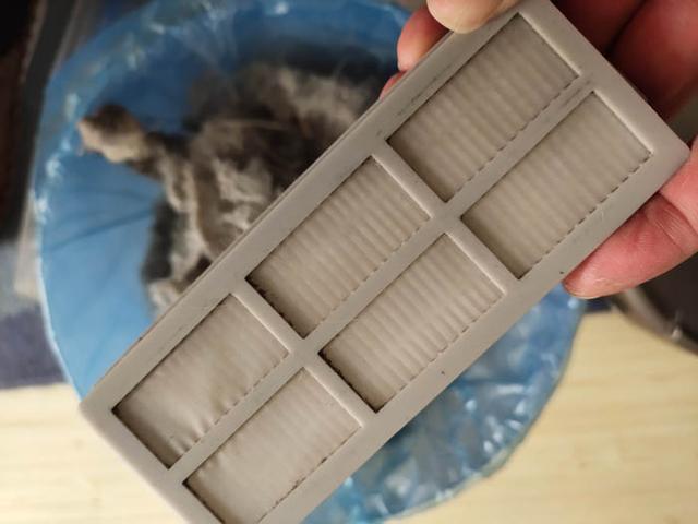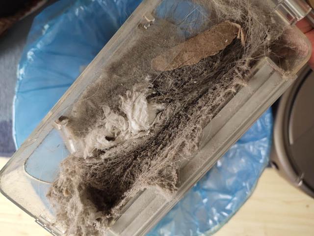 打开锁扣,可以看见里面是满满的垃圾,由于是第一次清扫,所以垃圾会多一些。以后就不会那么多了。可以看到垃圾很压的很结实。