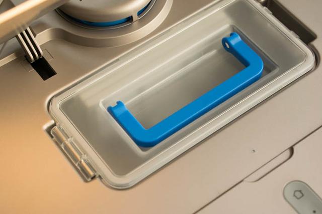 尘盒是透明的,同样是有锁扣可以方便打开和清理。