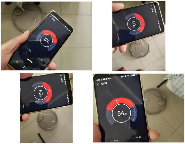 结果发现,在不同档位下的表现大约每个档位相差3个分贝,在现场的听力感觉上,一我使用过20台扫地机器人的经验,档位最低的比较温柔,档位标准的是常规的噪音,而增强的2档的确比较声音感染人。