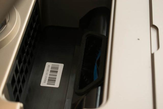 面板上拉起,可以看到下面是尘盒。不过这个面板只能开启到这个角度,拿起尘盒时会碰到面板,也不顺畅。