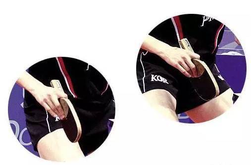 马龙横拍握法在准备反手进攻前拇指位置的变化。