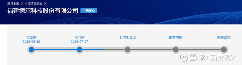 8月11日,上交所官网显示,福建德尔科技股份有限公司(下称,福建德尔)的IPO审核进度仍然为2023年7月27日的“已问询”状态。