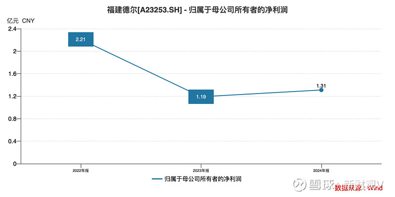 Wind数据显示,2022年福建德尔还以2.21亿元归母净利润展现增长活力,2023年便骤降至1.19亿元,跌幅近乎50%;2024年营收勉强触及2022年水平,归母净利润却仍停留在1.31亿元,仅为巅峰时期的六成。