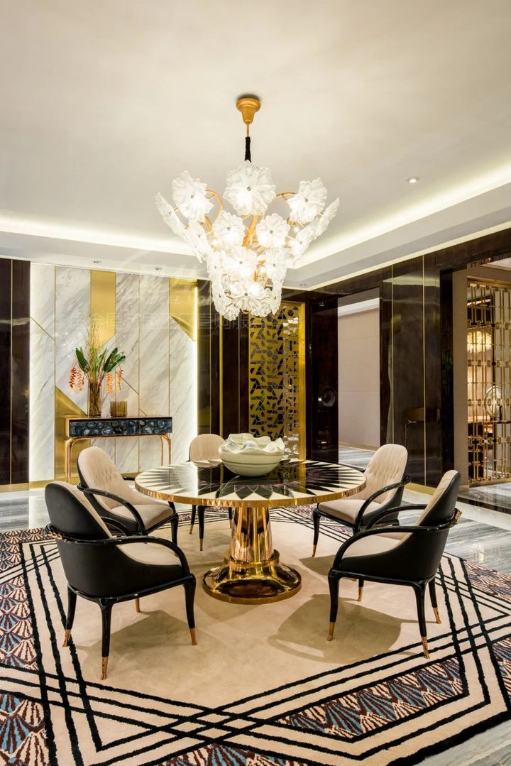 无论是家具还是软装,更多地使用金属元素,增加视觉冲击感,色彩更丰富明亮。