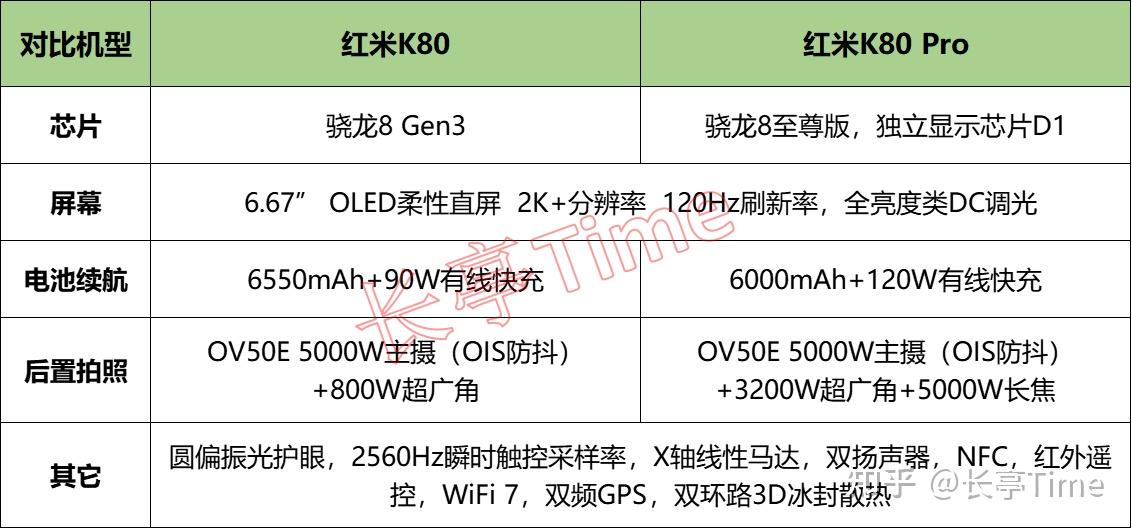 搭载骁龙8 Gen3、骁龙8至尊版芯片,两款机型的性能在各自价格段都很能打;屏幕素质都蛮不错,是同价格段少有2K+屏幕机型,兼顾清晰度、刷新率、护眼体验等于一体,且是目前支持圆偏振光技术最便宜的机型;后置主摄搭载OV50E,拍照都还不错,尤其K80 Pro后置三颗镜头覆盖焦段更全面;K80搭载6550mAh电池+90W有线快充,K80搭载6000mAh电池+120W有线快充,续航体验都很强;均搭载双扬声器、X轴线性马达、NFC、红外遥控、双频GPS、金属中框等,细节部分做得不错;性价比都极高。不足: