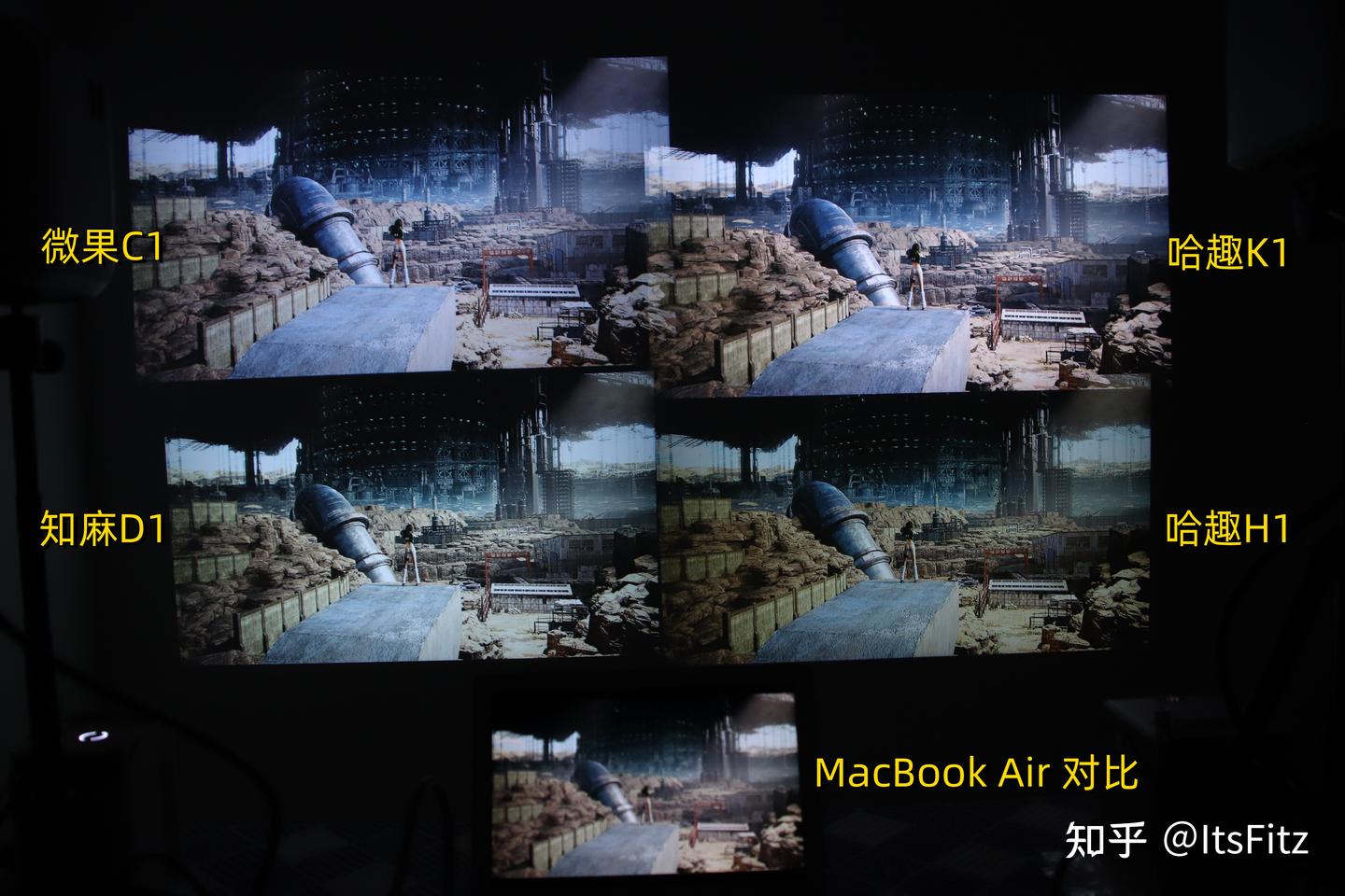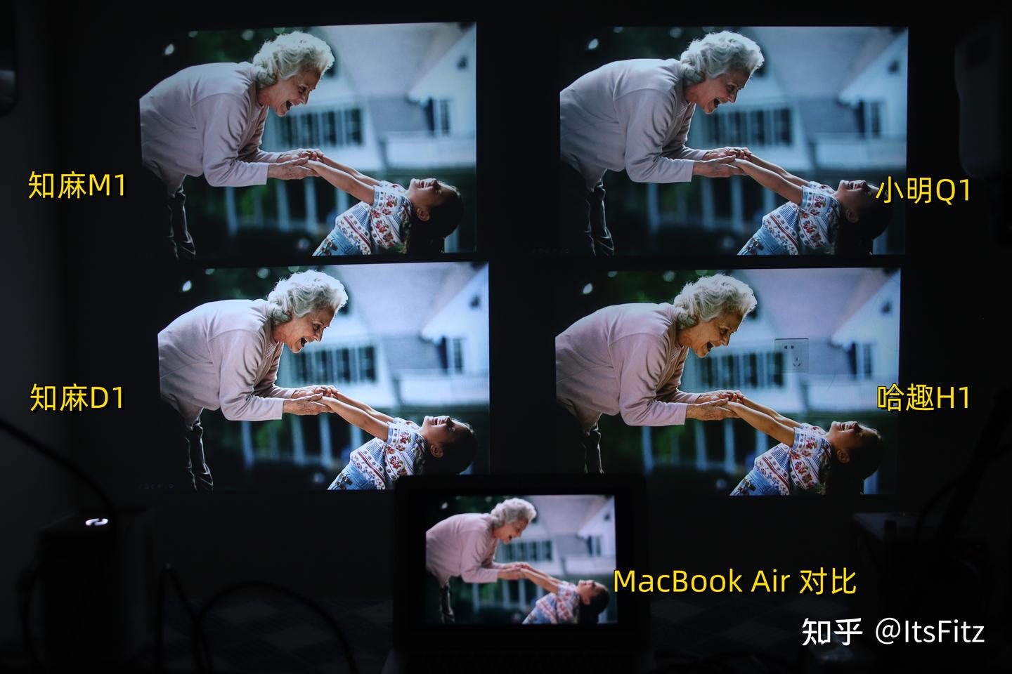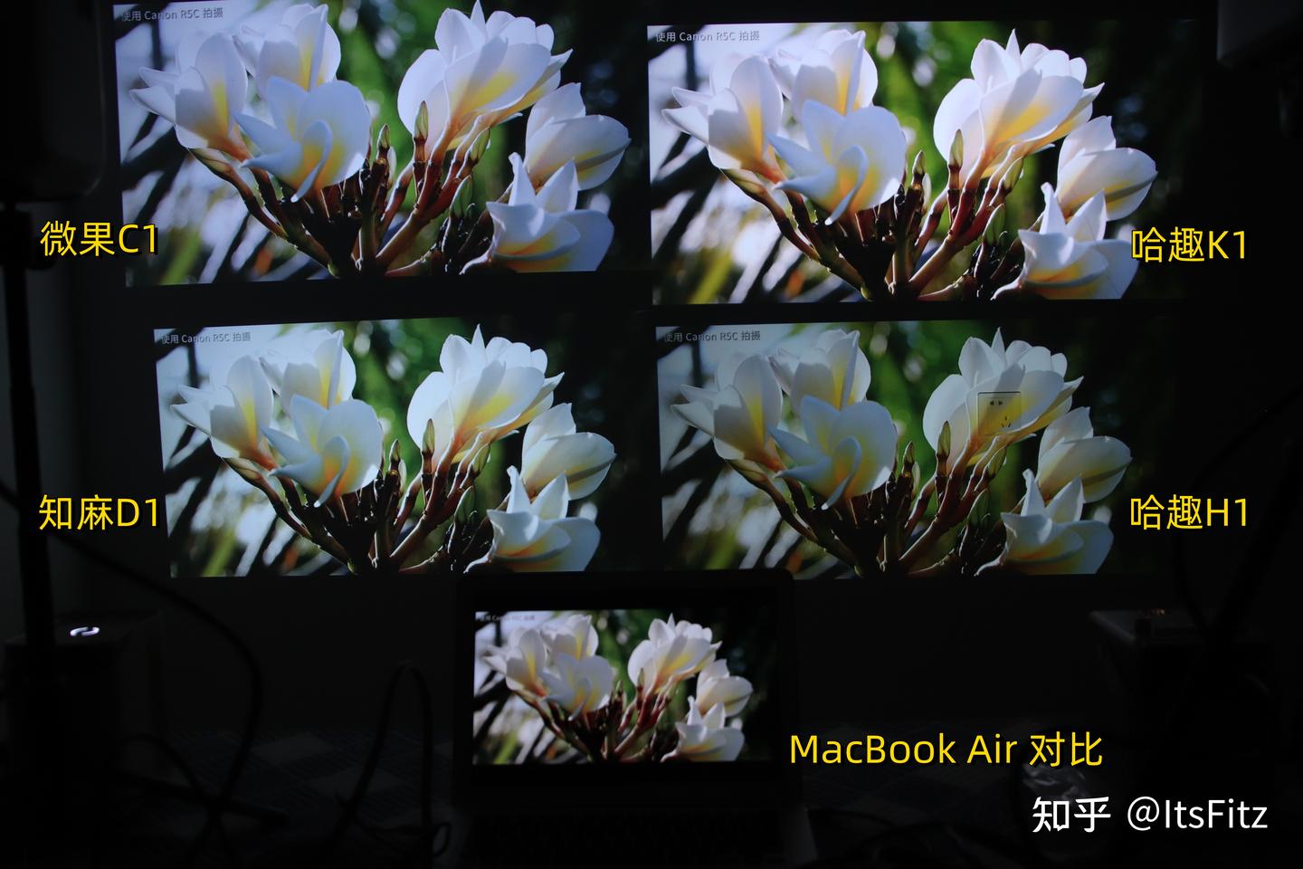 不过在下面对比中肯定有小伙伴问,为什么知麻D1看起来更亮。但亮度实测时知麻D1和哈趣H1的亮度差不多,所以知麻D1应该是在调色时提高了画面曝光,因此像画面中绿色部分就过亮,现场的实际效果还是哈趣H1更舒服的。