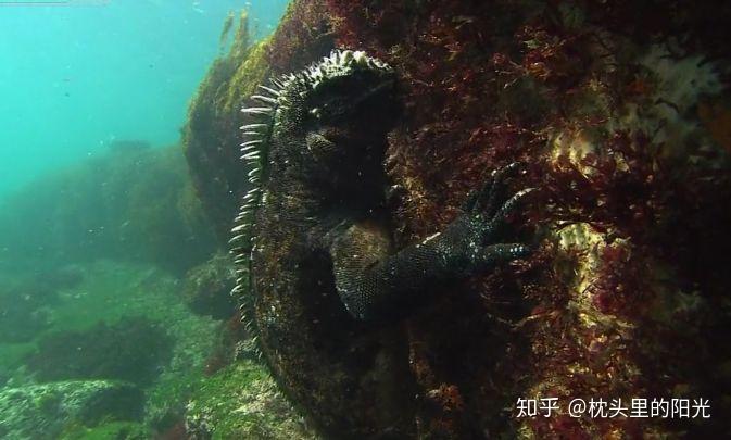 加拉帕戈斯海鬣蜥是世界上唯一能适应海洋生活的鬣蜥,作为冷血动物的它们在海底觅食不能超过十分钟,上岸后的海鬣蜥通常会趴在海岸石头上晒太阳以恢复体表温度。