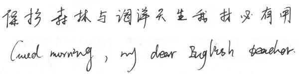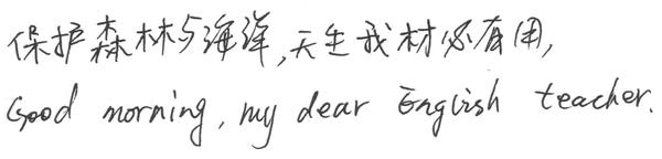学生4,男25岁。以上几份笔迹的中文和英文都是非常连贯的,说明具有很强的逻辑思维能力。