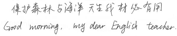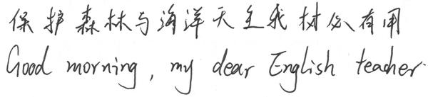 我们建议,中文临摹电脑里的楷体或行楷(注意,不是书法字贴,不要运用笔法),英文临摹意大利斜体。