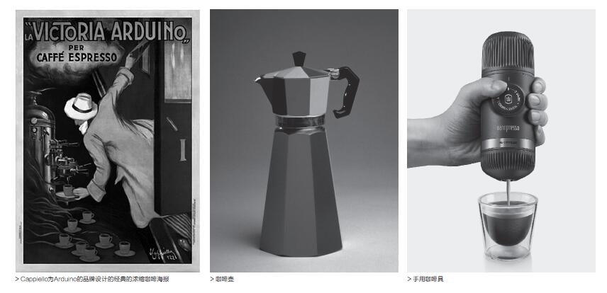 在研发新机器之外,Victoria Arduino也不忘探索新的营销方式。他请了平面设计师Leonetto Cappiello来为自己的品牌打广告。Cappiello为Arduino的品牌设计了经典的浓缩咖啡海报,在醒目的“la Victoria Arduino”字体下方,立着一台大型浓缩咖啡机, 一辆蒸汽火车正从旁边疾驰而过,一名乘客打开车门,身体向咖啡机方向倾倒,左手握着一个咖啡杯,伸到咖啡机的龙头下,等着杯子被新鲜咖啡填满。地板上也布满了一杯杯新出炉的咖啡。整个画面完美地捕捉到浓缩咖啡的本质和现代社会的节奏——理想的咖啡最好兼具好味道与“立等可取”。作为一个比Pion有过之而无不及的市场大师,Arduino强大的市场推广能力,赋予了浓缩咖啡新的品牌形象。因此,他对浓缩咖啡史作出最大的贡献,不在技术,而在于将浓缩咖啡的版图从米兰扩展到了欧洲各处。