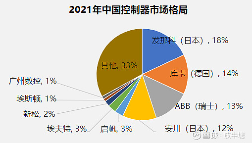 从竞争格局看,国外厂商占据主导地位,2021年发那科、库卡、ABB和安川占据国内机器人控制器约58%的市场份额。国内控制器企业分散、厂商竞争力较弱,卡诺普、万讯自控、固高科技等企业尚未形成有效市场竞争力,国产率不足20%。