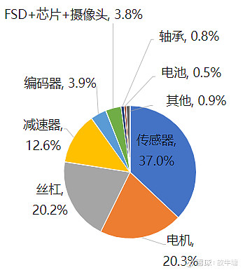 包含电池组1套、FSD系统1套、冷却系统1套、传感器N个