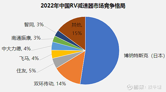 RV减速器工艺更复杂、壁垒更高,国产化率仍偏低。RV减速器结构复杂、加工精度要求更高,包括热处理、精加工、装配等,可直接影响寿命和性能。目前全球市场仍被纳博特斯克垄断,2022年其占据全球53%的份额。