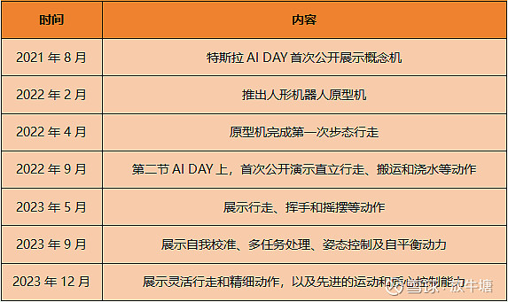 03 擎天柱快速迭代,下阶段有望实现出口擎天柱自发布以来保持高速迭代,自从2021年擎天柱首次亮相后,三年来特斯拉每隔几个月就会分享擎天柱的更新,主要是为了展示其步行速度和执行任务时精准度的进程。