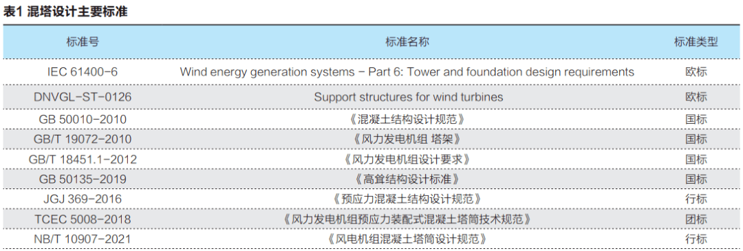 混塔技术涉及地质、机械、力学、材料、电力等多个学科,我国风电混塔行业正处于快速发展阶段,目前尚未建立完善的混塔技术标准体系,参照和引用标准以国标为准、行标和团标为辅。尽管混塔引用的国内外标准梳理高达数百项,但由于混塔独特的结构体系和特点,引用标准仍存在一定盲区和和模糊地带,甚至部分标准规定存在一定冲突;此外,不同混塔厂家有不同的结构型式和生产工艺,对引用标准的理解和认知不同,现有标准规范已不足以指导混塔行业健康稳定发展,同时也在一定程度阻碍了科研成果和创新技术的应用。