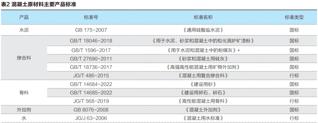 国内混塔混凝土及原材料主要引用现行混凝土及原材料标准如表2和表3所示。