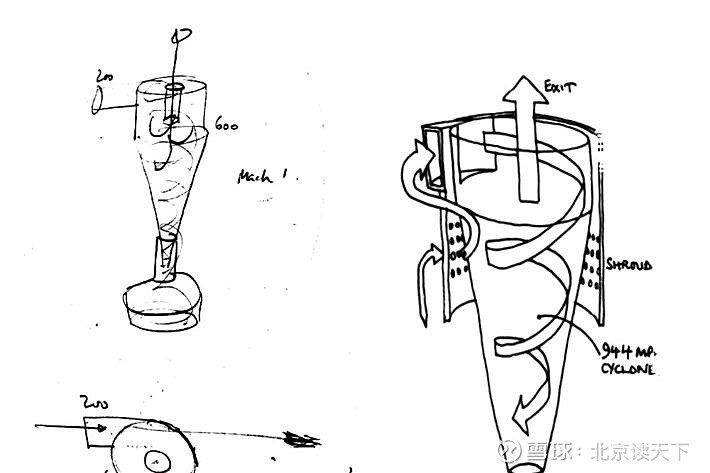 戴森吸尘器的独特之处是增加了一个气旋装置。真空泵吸入的空气形成气体旋后,由于灰尘和杂质重量高,在离心力作用下被甩出气旋中心。更小的微粒在上升到涡旋上层后,在速度更高的气旋中也会被甩出,落到尘杯中。气旋中心相对干净,使用更加致密的滤芯排气也不会堵塞。“没有尘袋”“吸力永不下降”是戴森吸尘器长期使用的产品宣传语。
