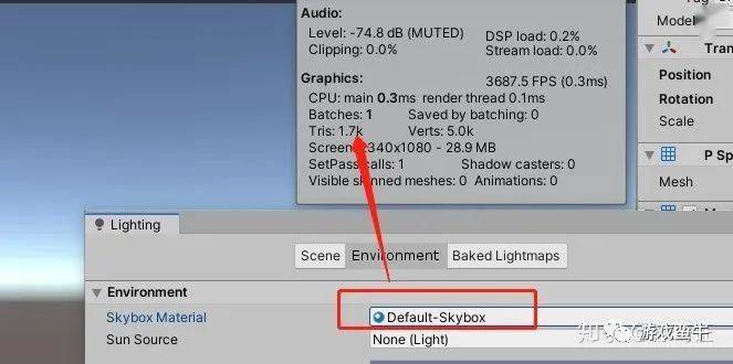 Unity自带的天空盒实际上是一个巨大的球体模型,上面贴了图。这玩意儿也是要算面数的。