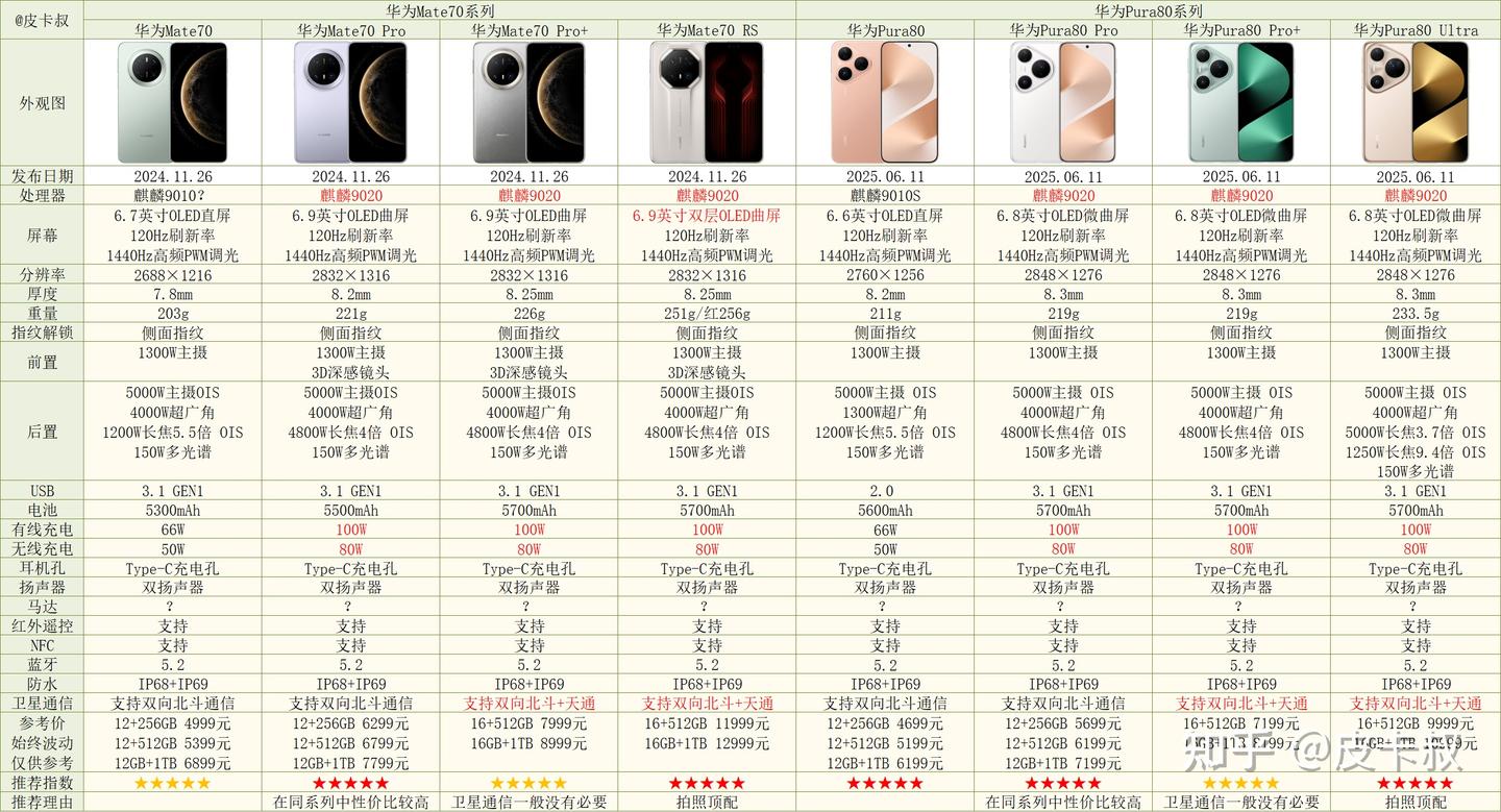 (二)华为手机目前在售的旗舰机主要是Mate70系列和Pura80系列。