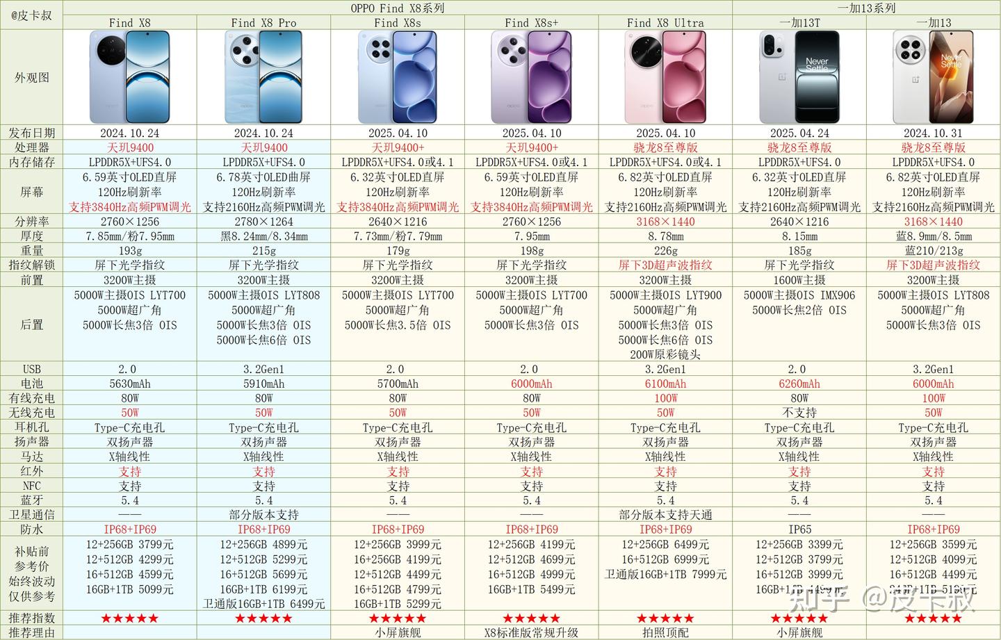 (四)OPPO、一加OPPO和其子品牌旗舰机参数对比如图。