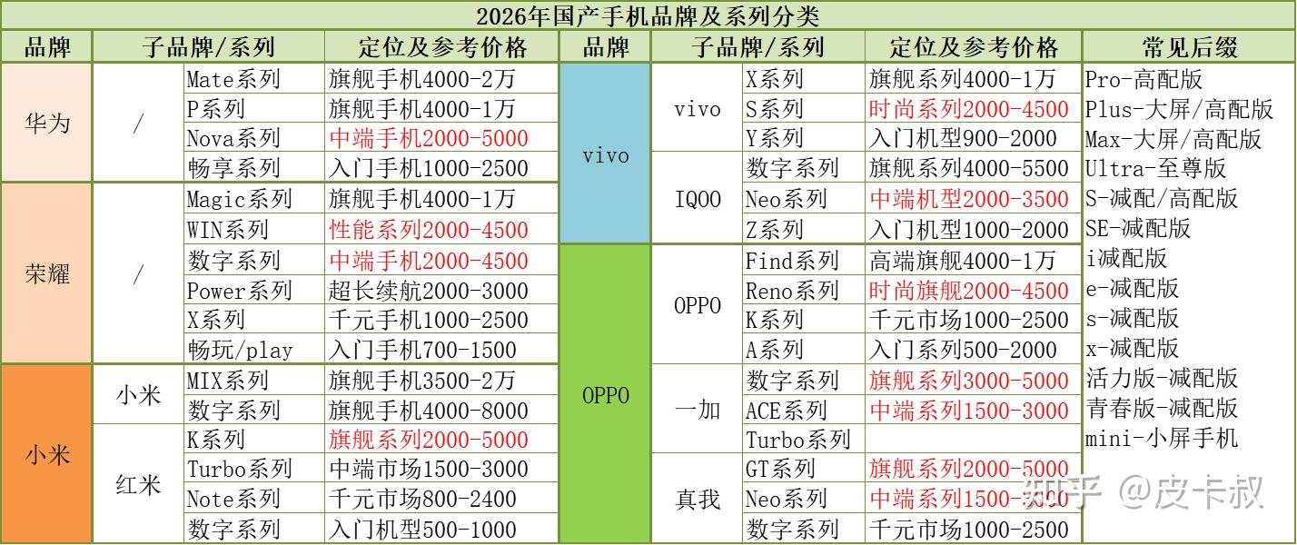 这个价位段通常是各品牌的次旗舰手机,性能和影像能力一般都不差。各品牌此价位段机型分布如图: