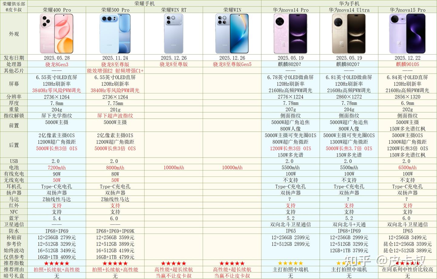 各品牌手机及平板选购指南:(一)按品牌选择荣耀手机介绍及推荐