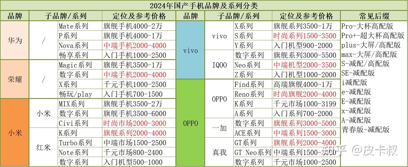 这个价位段通常是各品牌的次旗舰手机,性能和影像能力一般都不差。各品牌此价位段机型分布如图: