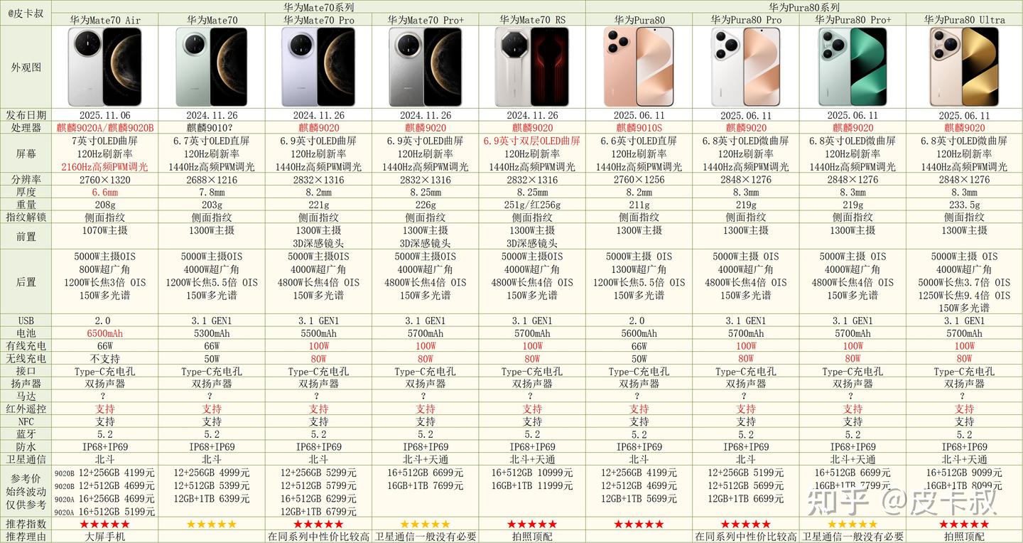 (二)华为手机华为目前在售的旗舰机主要是Mate70系列和Pura80系列。华为Mate80系列即将发布。