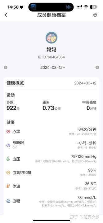 同时还有远程监控功能,可以在自己的手机上随时了解父母的健康指标情况: