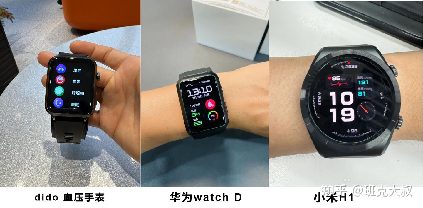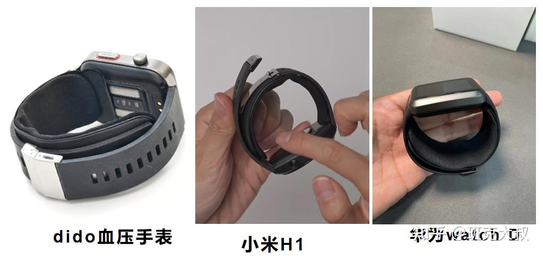 通过光电传感器对血液流动的光学信号进行建模测血压另一种是气泵式加压检测法,这种监测方式和腕式血压计的检测方式一样,都是将手表戴在手腕上之后,都是通过气囊加压减压来读取血压数值。这种方式的优点就是检测的精度更高,缺点是手表腕带因为多了一个气囊,夏天戴着容易出汗,且手表体积也偏大。今天我介绍的三款小米H1、华为watch D和dido SH都是这种检测方式。