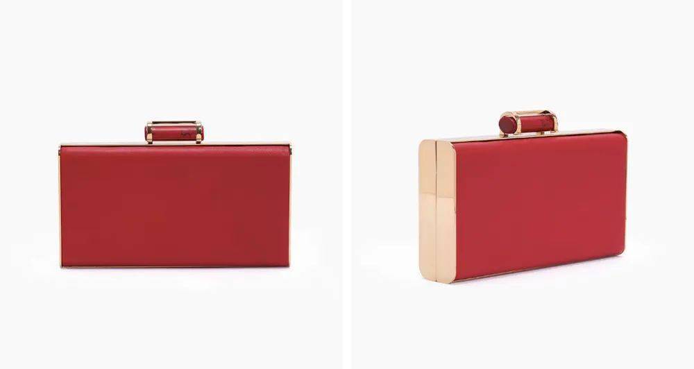 如果想要更提升气场的款式,可以看看他家的这种硬质手拿包款,采用金属和皮革表面混搭制作,开口处还用宝石感的搭扣点缀,拿起来就像一个小宝盒,精致度满分。