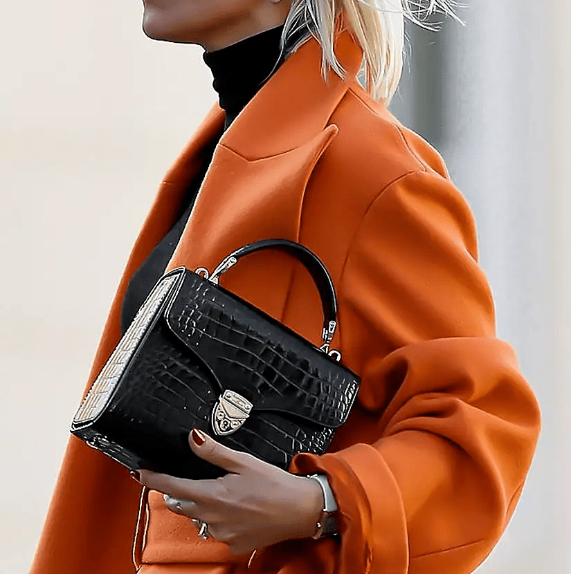 鳄鱼皮压纹皮质也是他家设计特色,不仅让包身更硬挺还充满手工艺的感觉,就算平时比较时髦现代的穿搭也能够轻松驾驭。