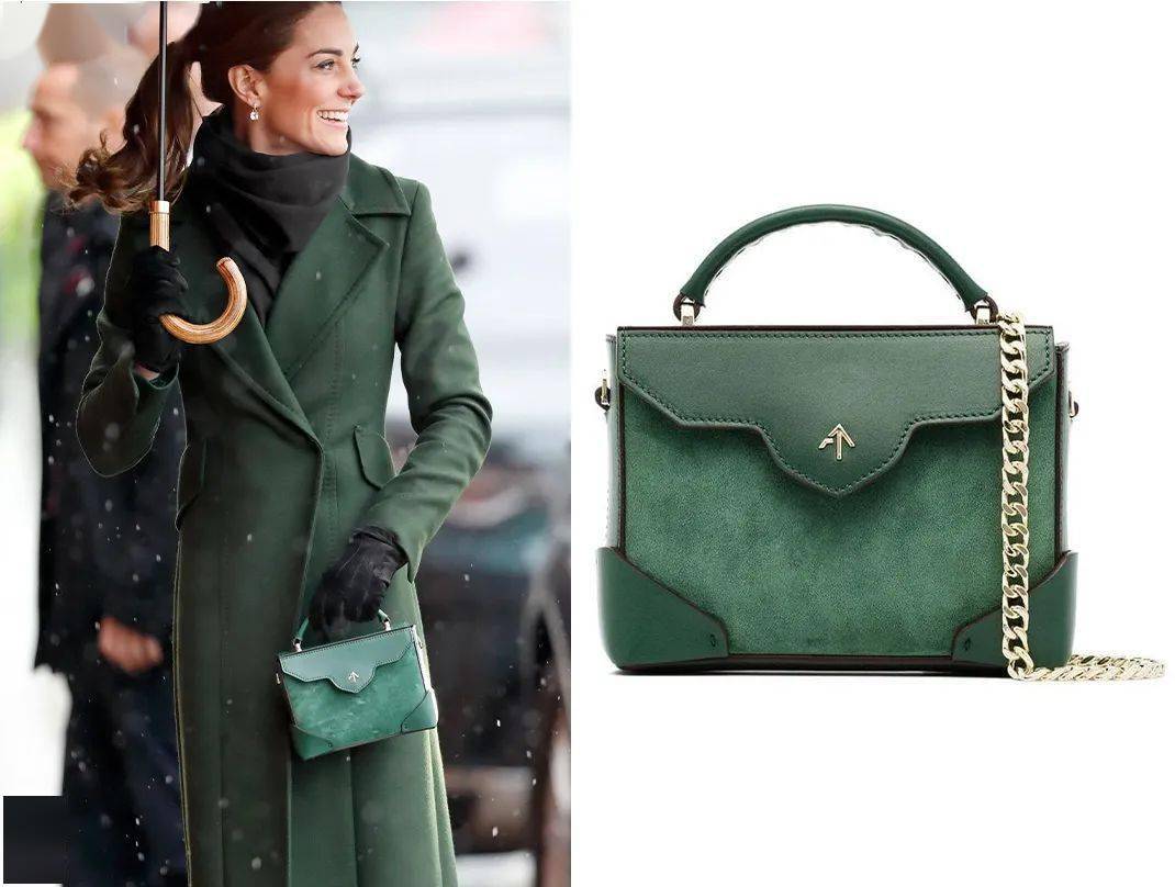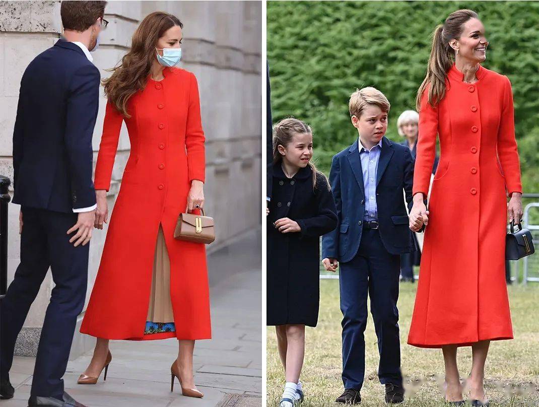 DeMellier是一个近两年在英国王室成员之间很火的小众包品牌,今年凯特两次穿红色大衣亮相,都是拿的他家的迷你手提包,时髦感很强。