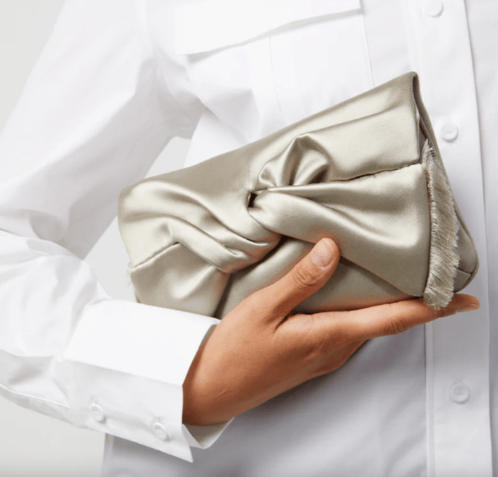 如果想要优雅一些的,可以看看这一季推出的这只缎面蝴蝶结手拿包,香槟配色知性又耐品,流苏搭配也很显细节感。