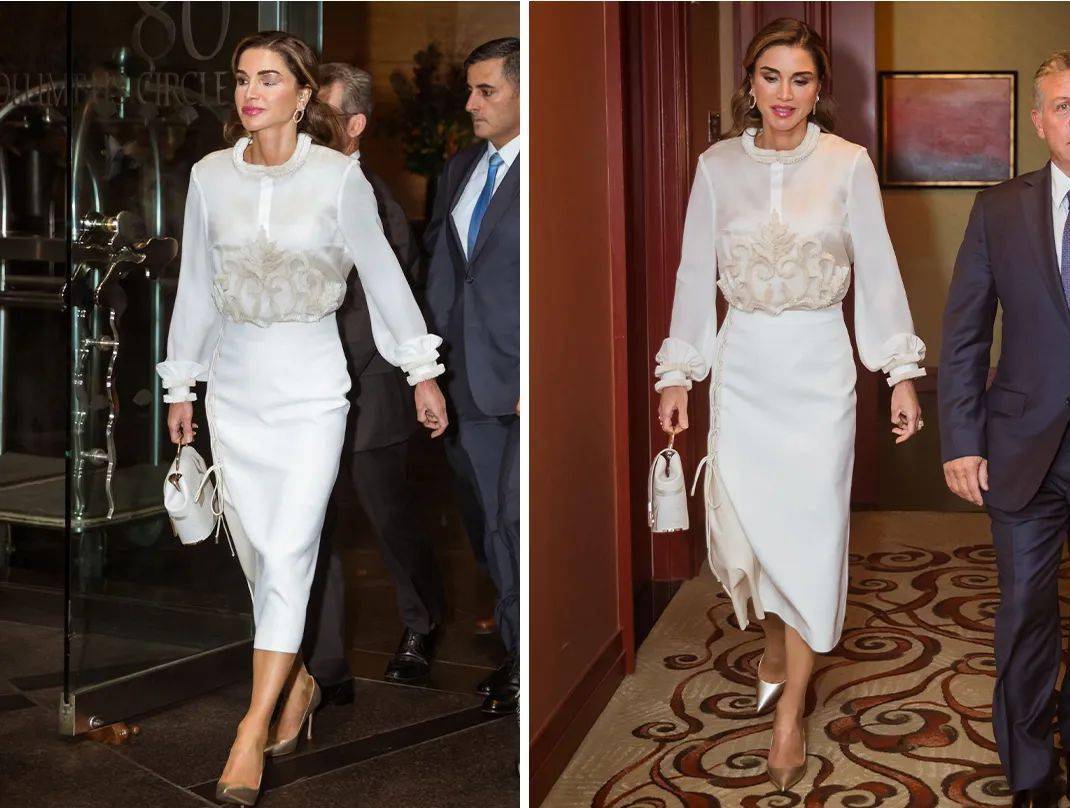 在包包和服装的搭配的方法上,王室女性们一般会遵循色彩搭配原则。比如顺色一般就是首选,拉尼娅王后穿白色套装的时候,就搭配了一只同色系的ONESIXONE家手提包,金色手柄和衣服上的印花也很配~