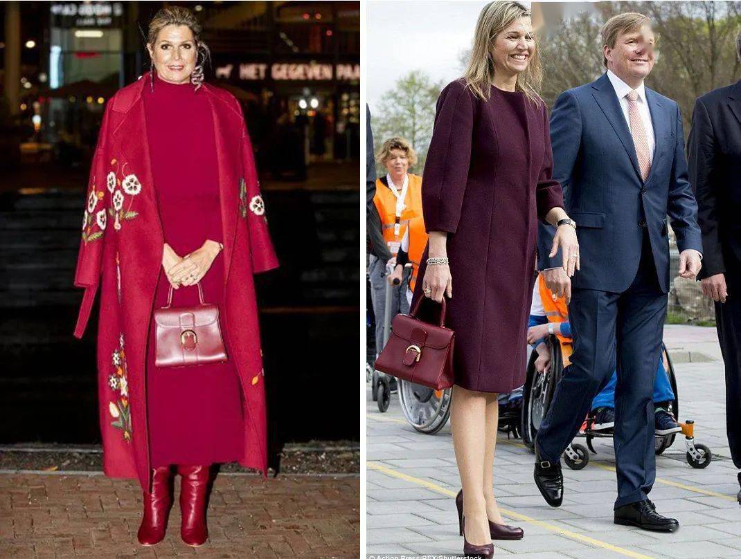 这两年荷兰马克西玛王后也频繁使用他家的手袋,这只红金配色的Brillant,高级又贵气。