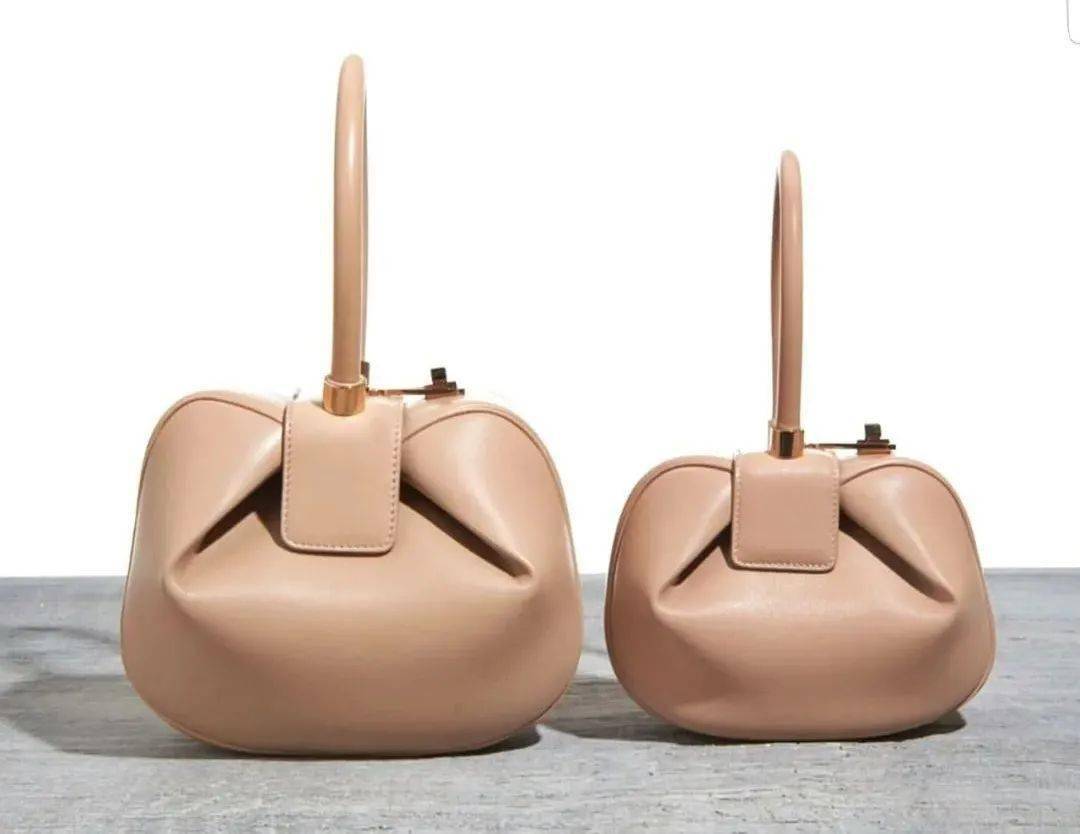 这款造型很像健身壶铃的包包是他家的出圈款式,小号叫做Demi,中号叫做Nina,都是使用nappa皮手工制作,质感在线,拎出去也很难撞款。