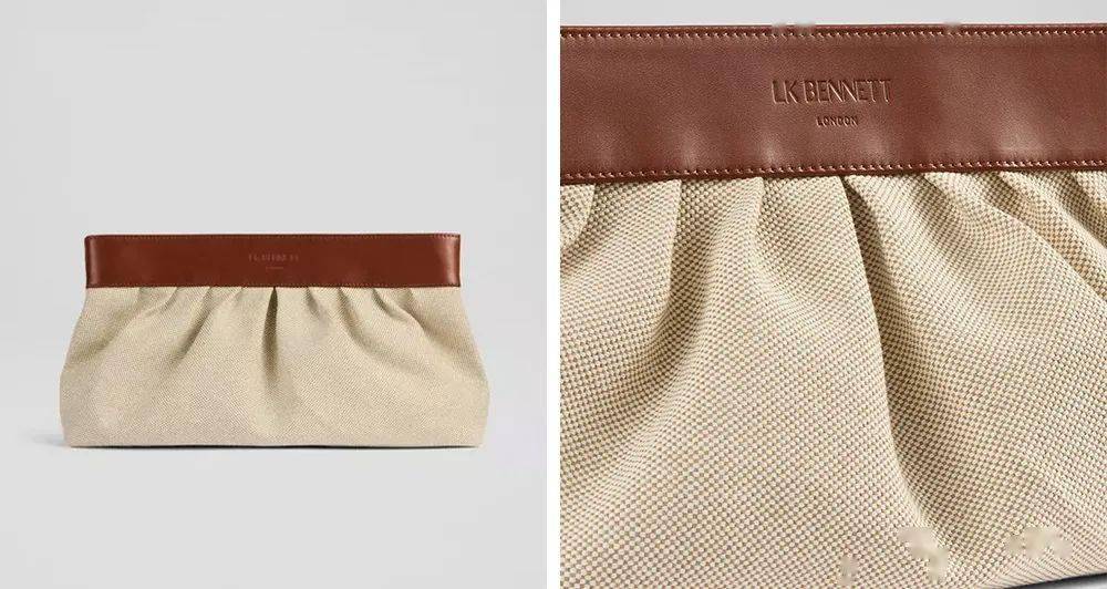 LK的春夏新品中,还推出了一款帆布拼皮的手拿包款式,造型还有点像饺子,搭配日常和度假风的服装就很可。