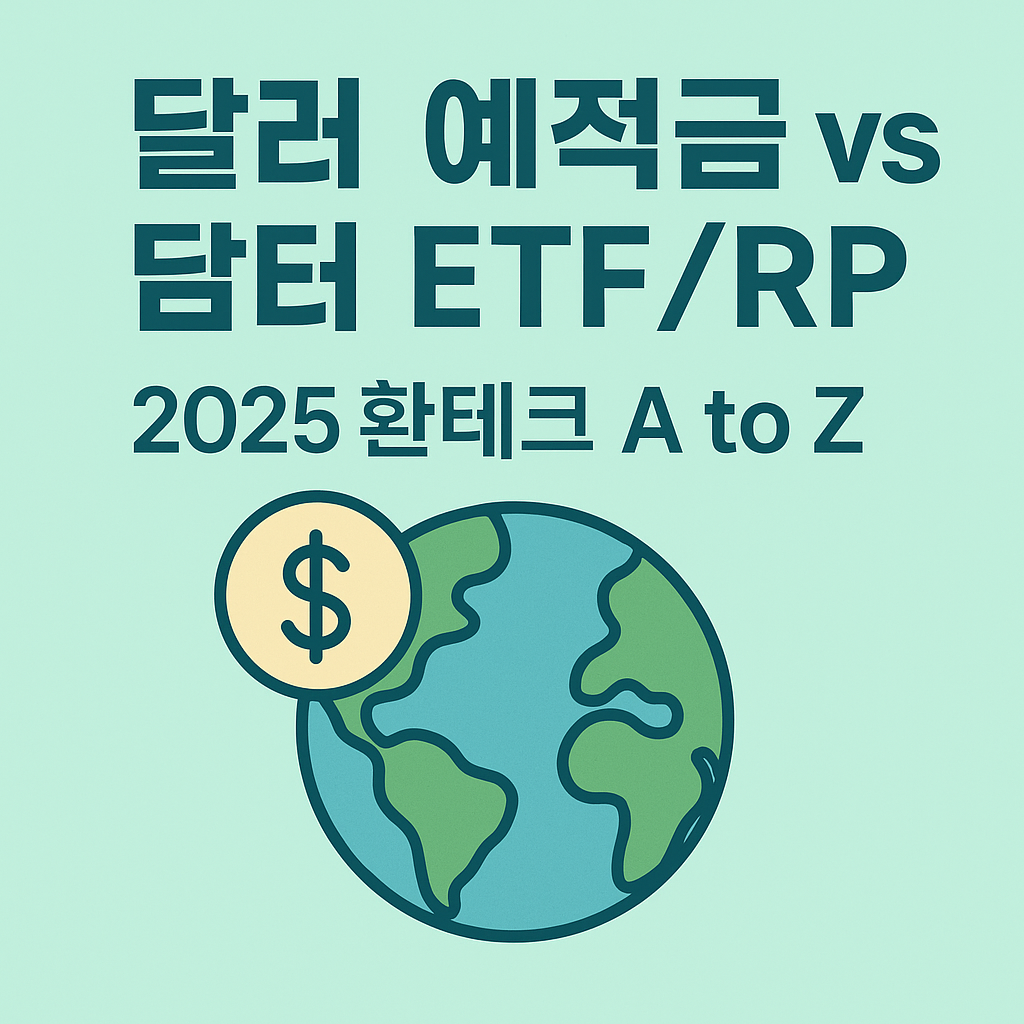 금리 인하 사이클이 시작될 가능성이 높지만, 글로벌 리스크·트럼프 2.0 정책·유가 변동 등으로 환율 변동성은 계속 남아 있기 때문이죠. 그래서 요즘 많은 분들이 “달러 예적금이 나을까, ETF가 나을까, 아니면 RP가 좋을까?”라는 질문을 많이 합니다.오늘은 이 세 가지를 장단점 중심으로 쉽게 비교하면서, 투자 성향별로 어떤 선택이 최적인지 정리해 드릴게요.1. 달러 예적금의 장점과 단점 (외화 예금)달러 예적금은 안정성과 단순함 때문에 환테크 입문자가 가장 먼저 선택하는 방법이에요.● 장점환차익 비과세: 환율이 오르면 생기는 차익은 세금 없음예금자 보호 5천만 원 → 원화 예금과 동일한 안전성금리 수준 양호: 2025년 3~5%대 달러 금리 가능해외여행·유학 등 달러 지출 목적이 있다면 최적● 단점환율 하락 시 환차손 발생 위험환전·현찰 인출 시 수수료 존재이자에는 15.4% 세금 부과👉 이런 분에게 추천 : 초보자, 안전성 최우선, 미래 달러 지출 계획(유학·여행·해외 결제)이 있는 사람