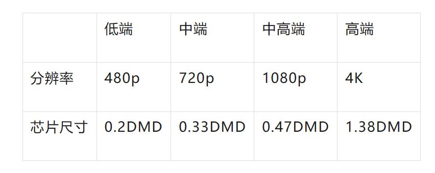 投影仪的分辨率和芯片尺寸直接相关,有的厂家在标注标准分辨率的时候会虚标来蒙混过关。