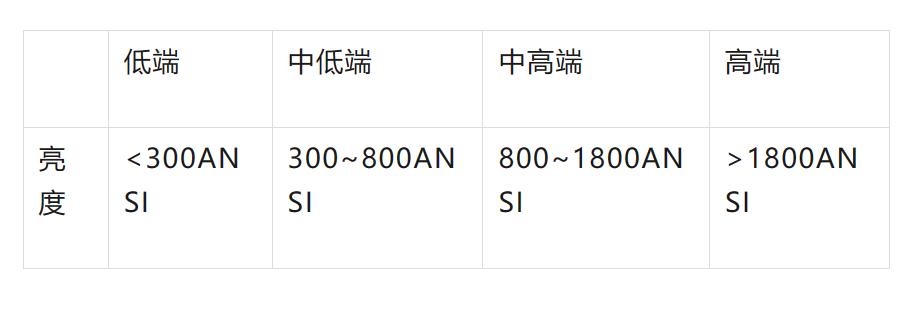 上表仅为 DLP 投影参考(单片 LCD 技术往往应用于中低端的投影仪)。