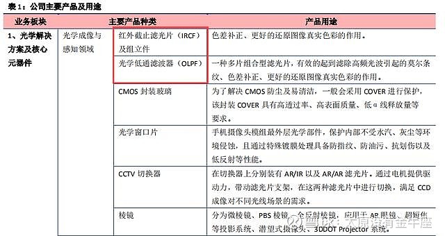 主导产品红外截止滤光片(IRCF)和光学低通滤波器(OLPF)两大产品产销量居全球前列,产品服务于苹果、华为、三星、OPPO、vivo 等主国内外一线/主流品牌。