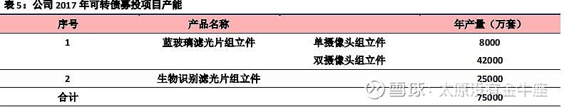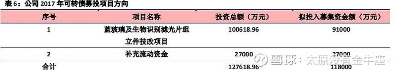 公司 2017 年可转债募投项目产能蓝玻璃 IRCF 扩产完成。2017 年公司公开发行可转换公司债券募集资金不超过 11.8 亿,用于蓝玻璃及生物识别滤光片组立件技改项目扩产及补充流动资金。