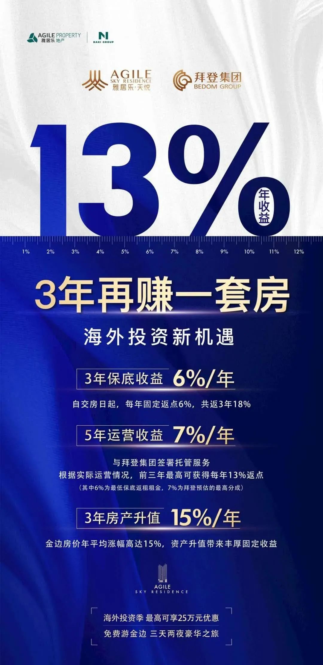 项目详情:雅居乐天悦 | 保底收益+运营收益+房产升值,3年再赚一套房!金边使馆区BKK1地标住宅,均价仅2万元/㎡