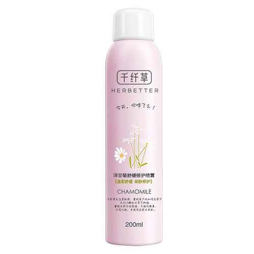 前段时间脸过敏,用了雅漾的大喷,那是用的好快啊,每天喷喷喷,于是就用了闺蜜推荐的千纤草洋甘菊喷雾,现在我已经爱上了它,雾真的好细腻,闻着洋甘菊的味道,是淡淡的药味,上脸很冰冰凉凉的感觉,搭配素见修护乳是有镇定肌肤和舒缓肌肤的效果。