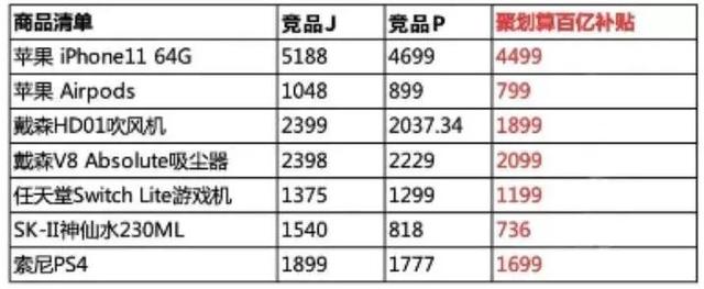 2019年双12期间,聚划算推出了“百亿补贴”后价格,当时有人统计了聚划算的价格和另外两家电商平台的价格,进行对比,聚划算给出了更大额优惠。至此,淘宝和拼多多的“百亿补贴”正式拉开帷幕。