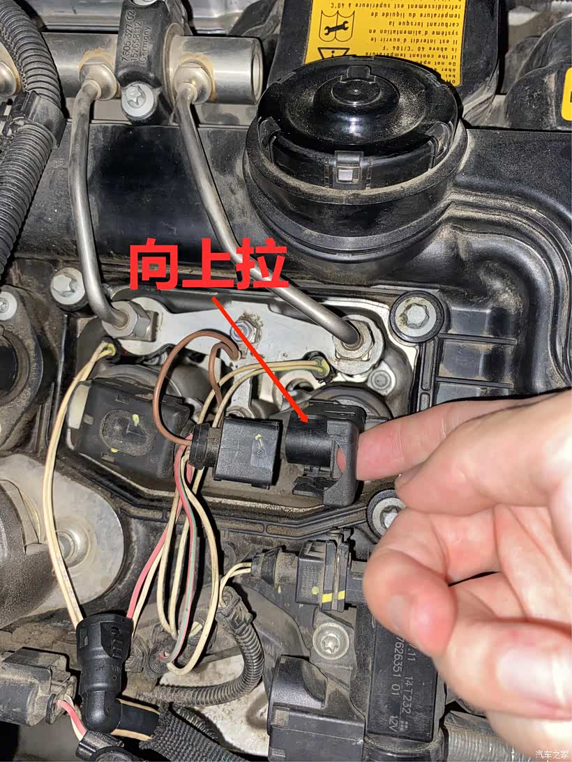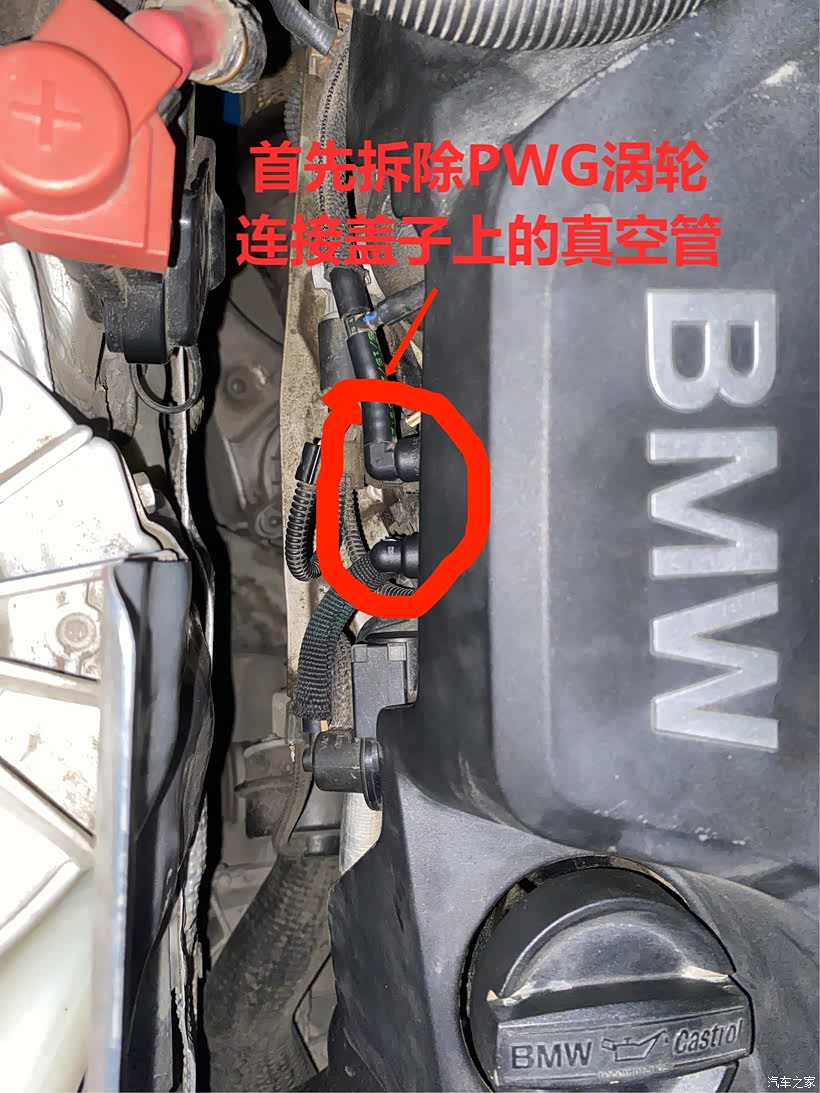 我是PWG涡轮(机械真空废气旁通阀执行器),拆发动机罩需要拔掉真空管!14款以后都是EWG(电子控制废气旁通阀执行器),发动机罩与机体没有任何连接,直接拆下即可!