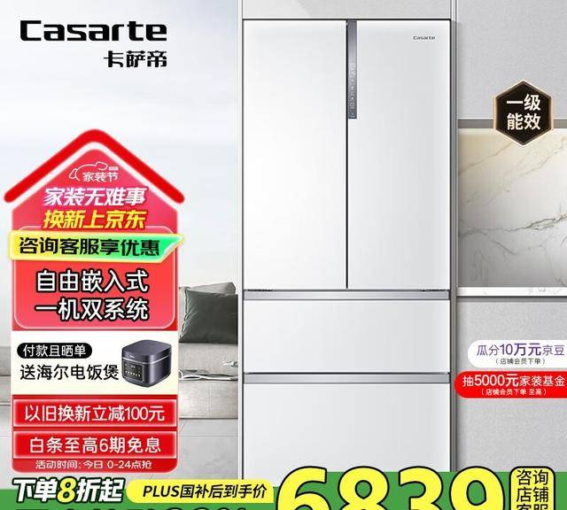 卡萨帝(Casarte)555升超薄法式多门四开门超大容量自由嵌入式双系统一级能效国家补贴20%冰箱